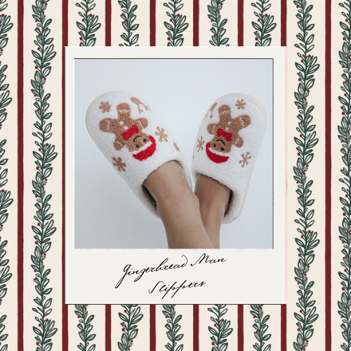 Get a FREE pair of gingerbread man slippers with a purchase of $150 or more.