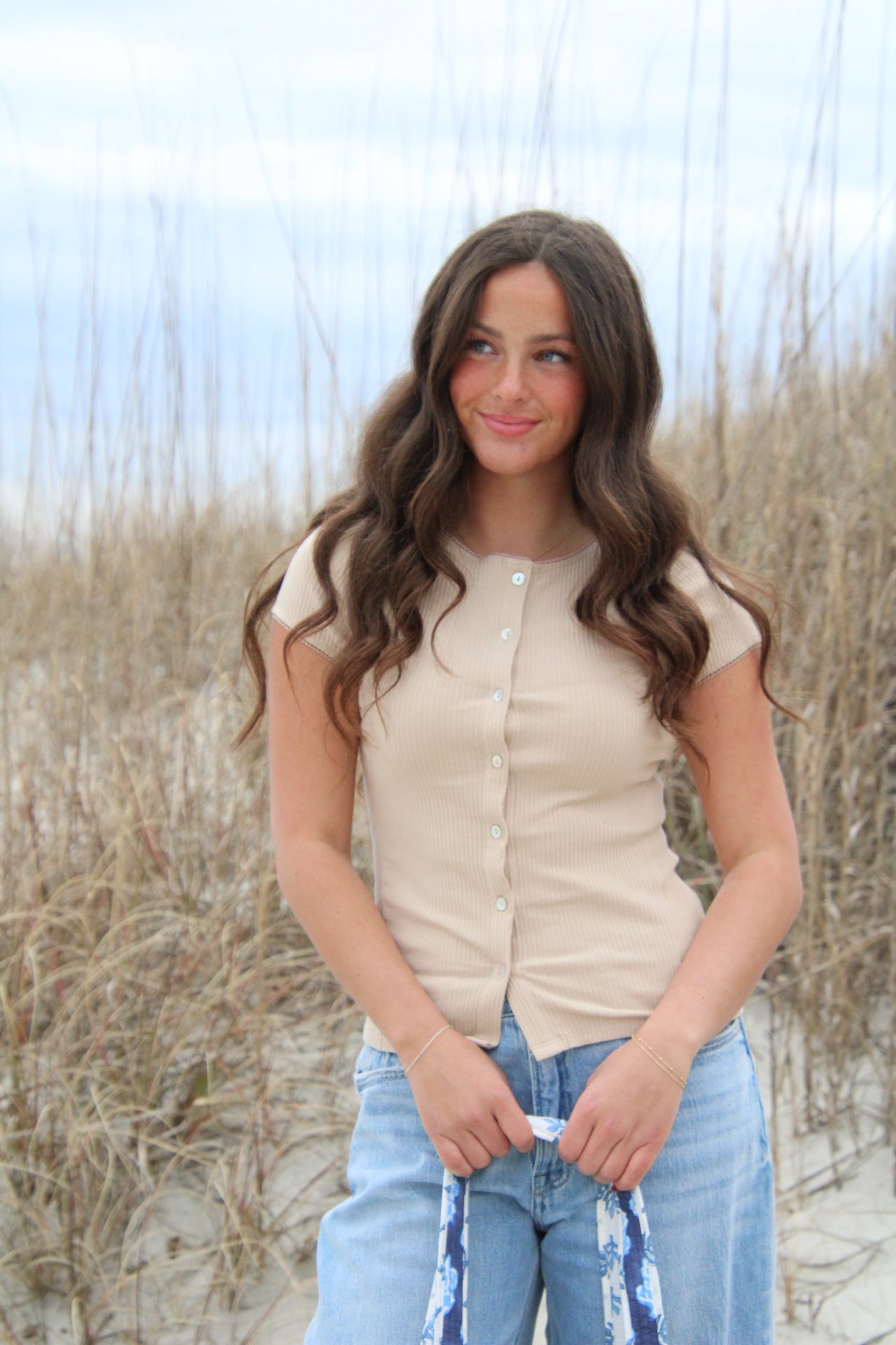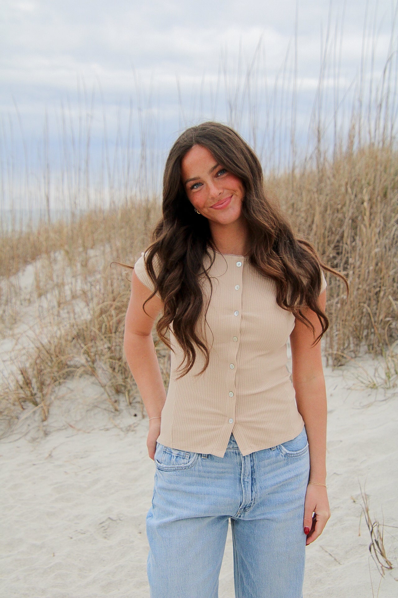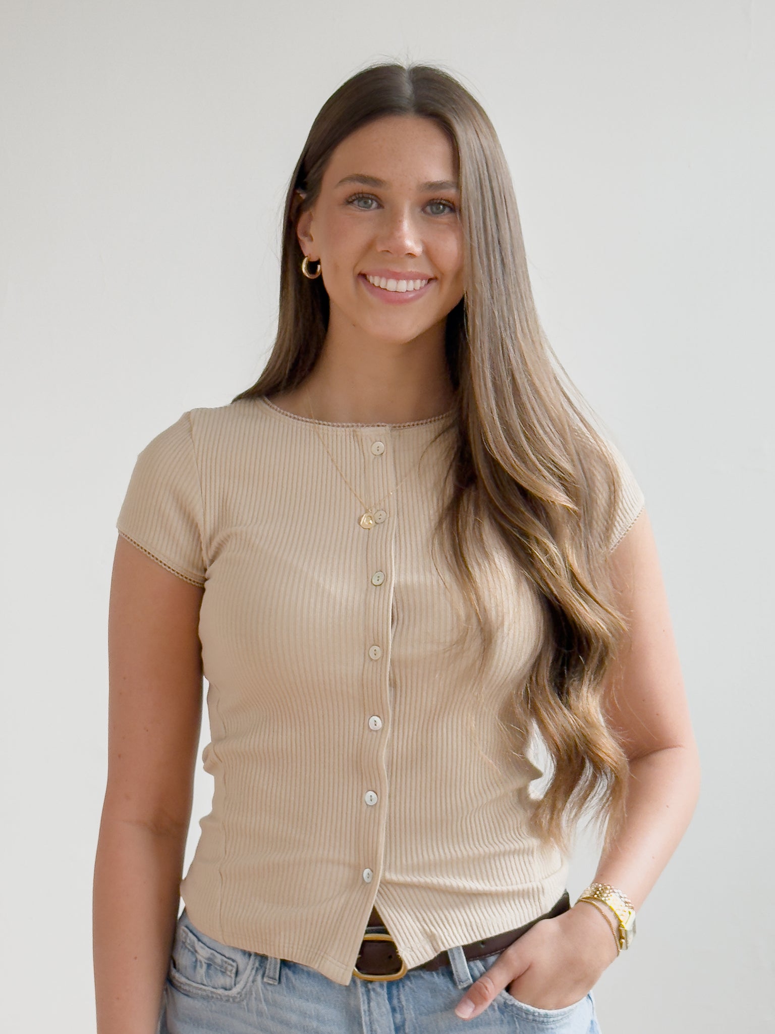 The Autumn Top brings fun to your basics with its soft, stretchy ribbed fabric that moves with you all day long. Crafted from organic cotton, it feels gentle on your skin and kind to the planet. Finished with charming mother of pearl buttons, this elevated essential adds a touch of playful elegance to your wardrobe. Perfect for layering or starring on its own!