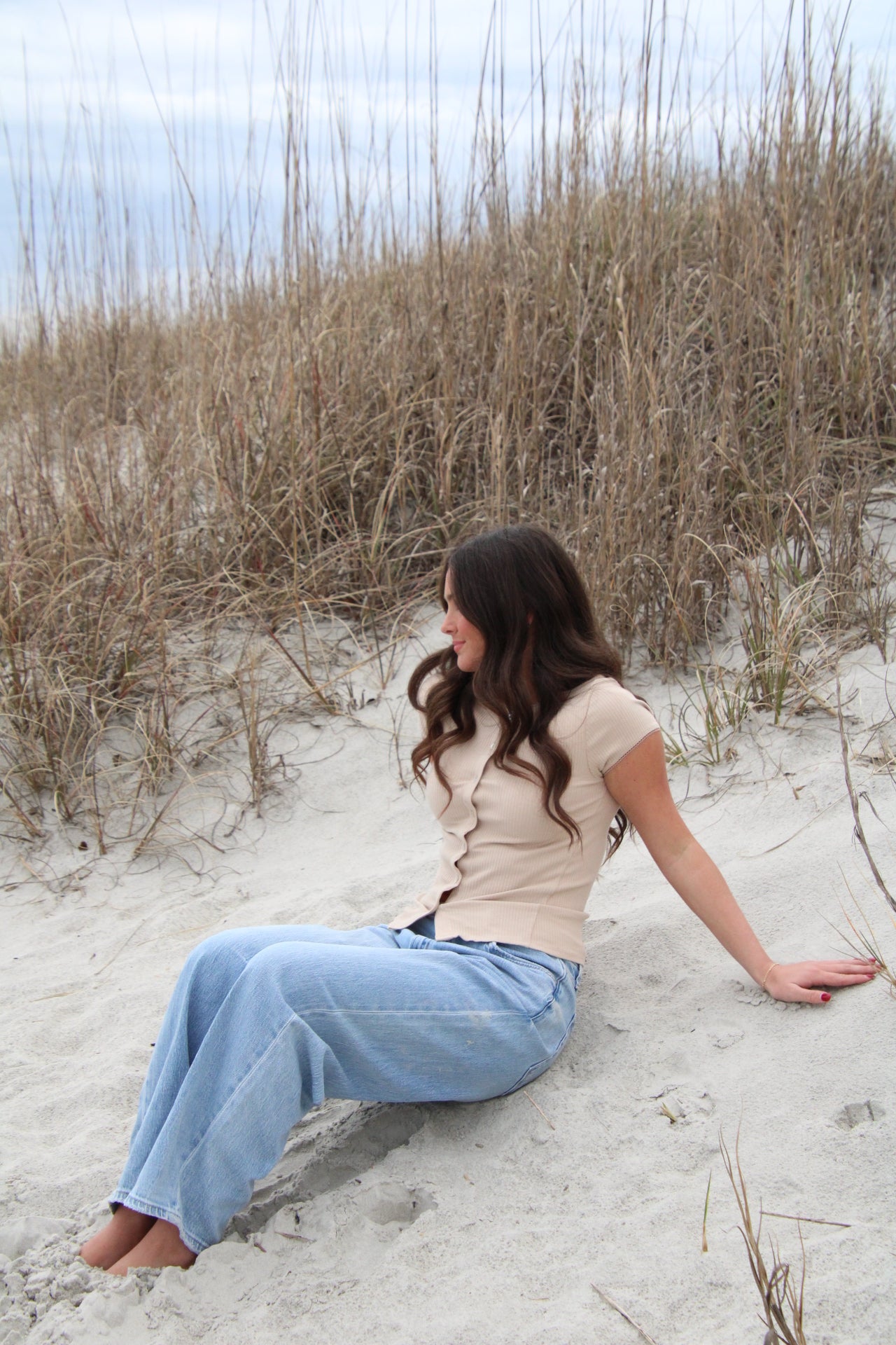 - Beige in color