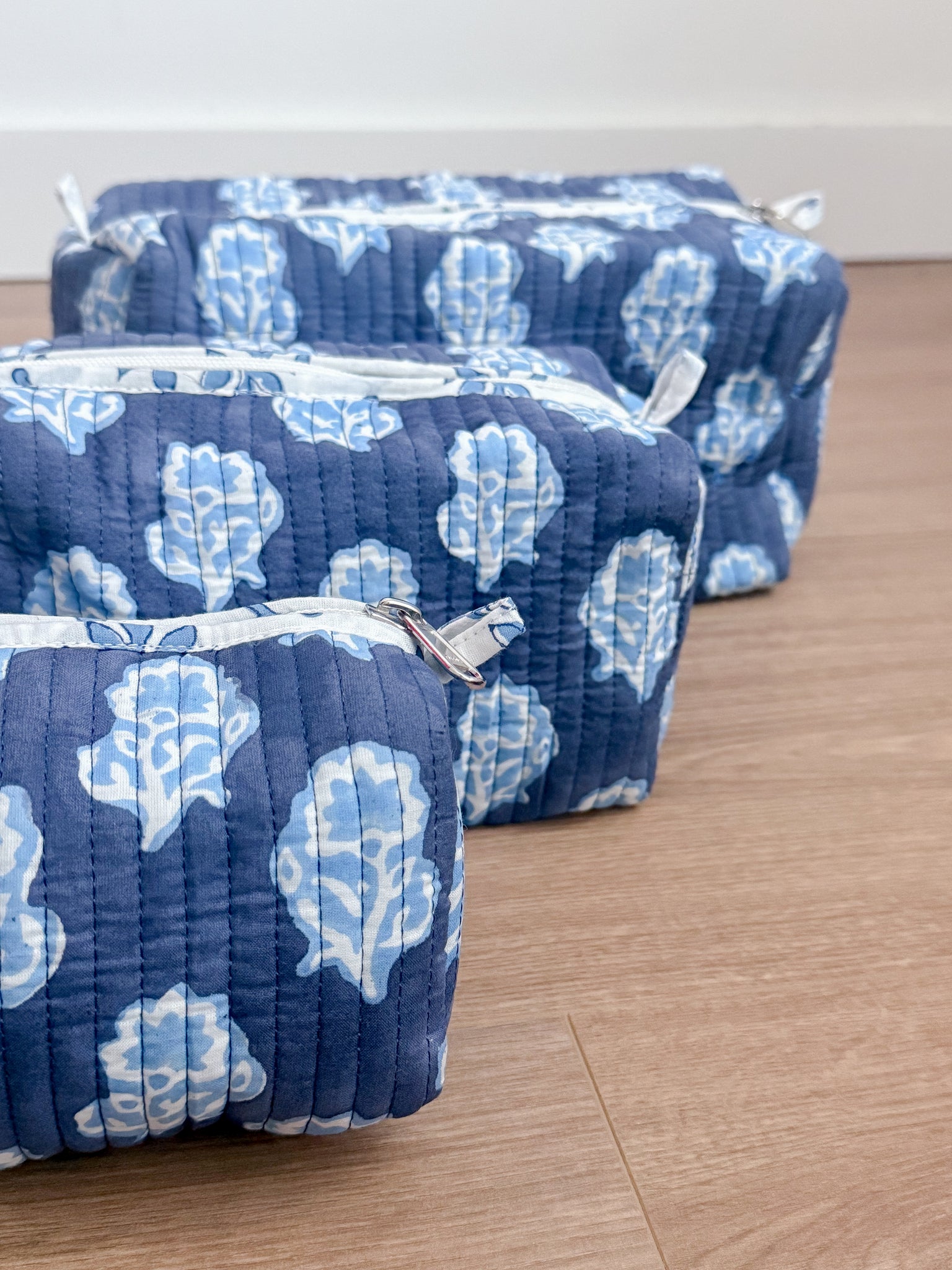 Take your organization to the next level with the Eden Travel Pouch! Handcrafted with a stylish block print, this pouch is perfect for storing your make up, hair accessories, or even pencils. The wipeable lining ensures easy cleaning. Upgrade your travel game with the Lanie Travel Pouch!