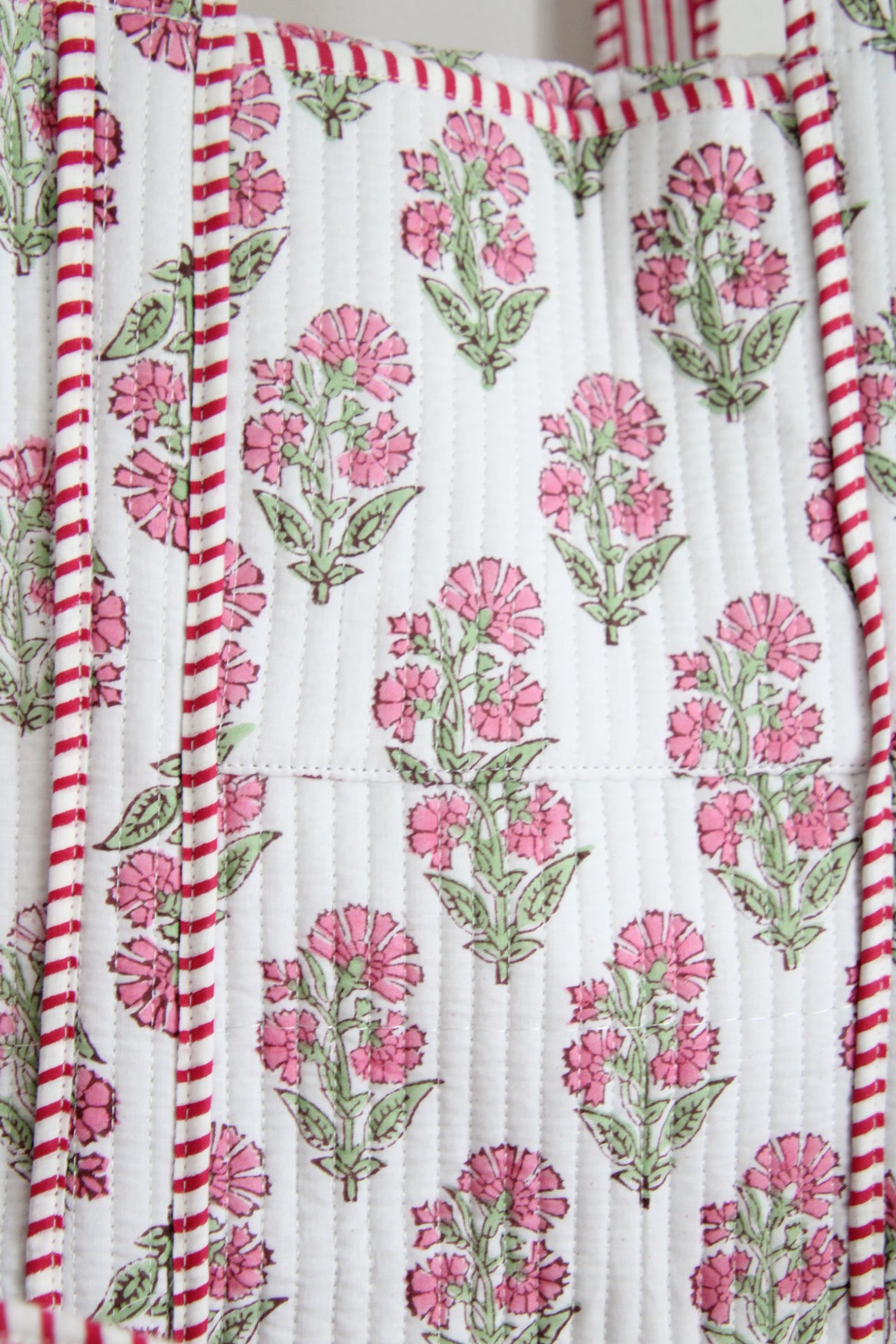 Introducing the Nina Duffle Bag: the perfect companion for your week long adventures. With brass metal detailing and 2 spacious external pockets, it's both stylish and functional. Handcrafted with a unique block print and a detachable strap for versatile carrying options. Get ready to make a statement on your travels!