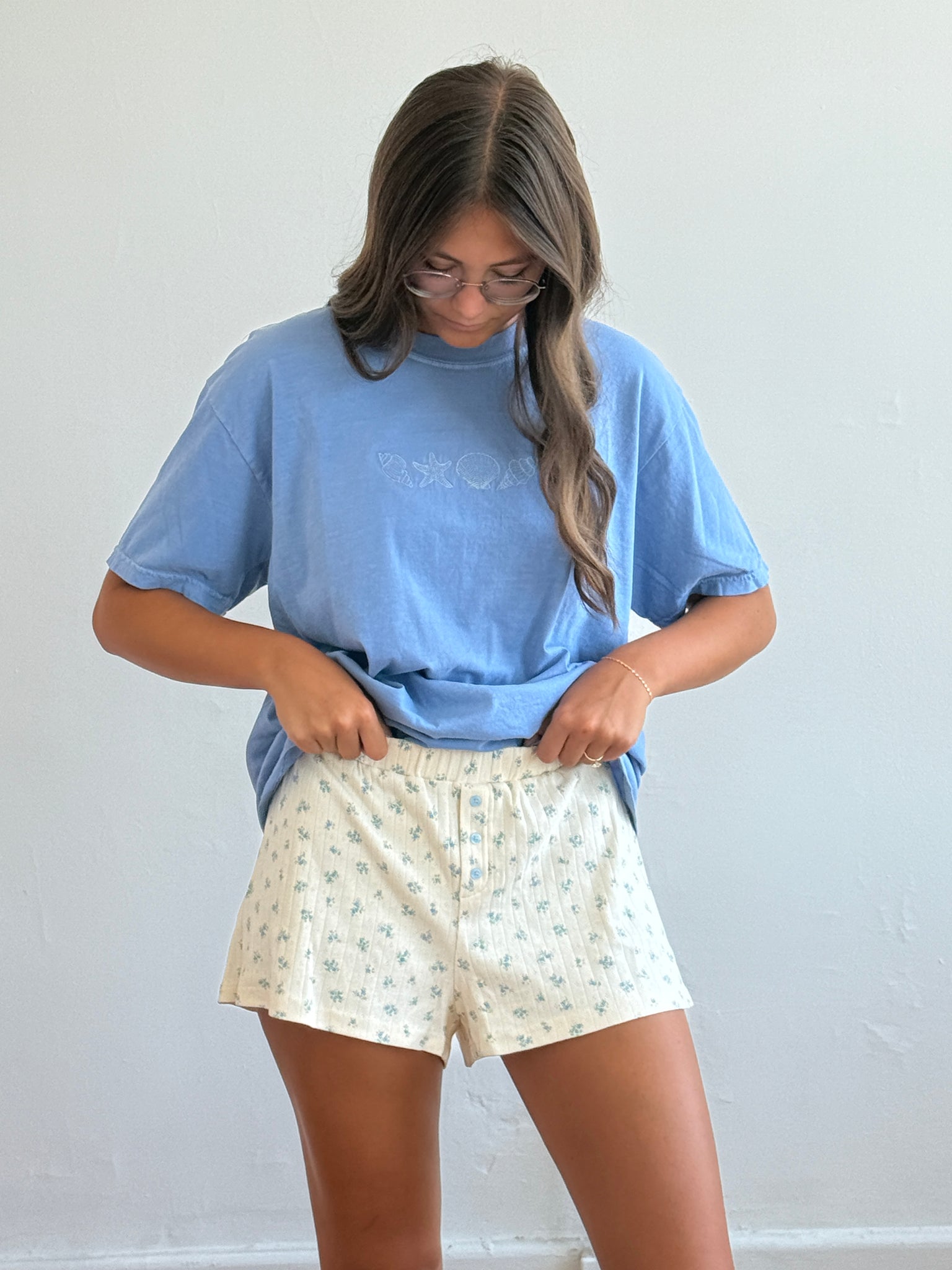 Get ready to cozy up in the Dreamer PJ Shorts, featuring a charming dainty floral pattern perfect for lounging in style. Pair them with your favorite oversized sweater for the ultimate comfort combo that’s as playful as it is relaxing. Perfect for lazy days and sweet dreams!