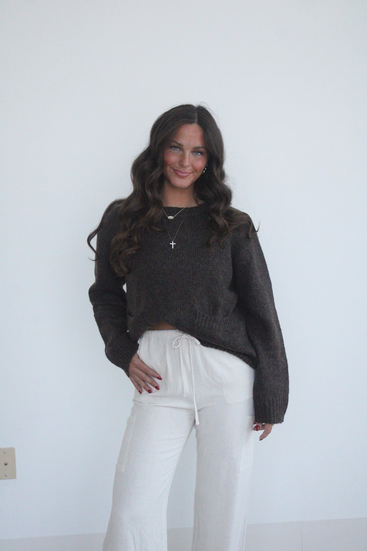 Settle into cozy moments with The Fireside Sweater, your new go-to for chilly days and slow evenings. Crafted in a rich dark cocoa brown, this sweater captures the warmth and ease of a fireside glow. Its loose, relaxed fit drapes effortlessly for that lived-in feel you’ll reach for again and again.