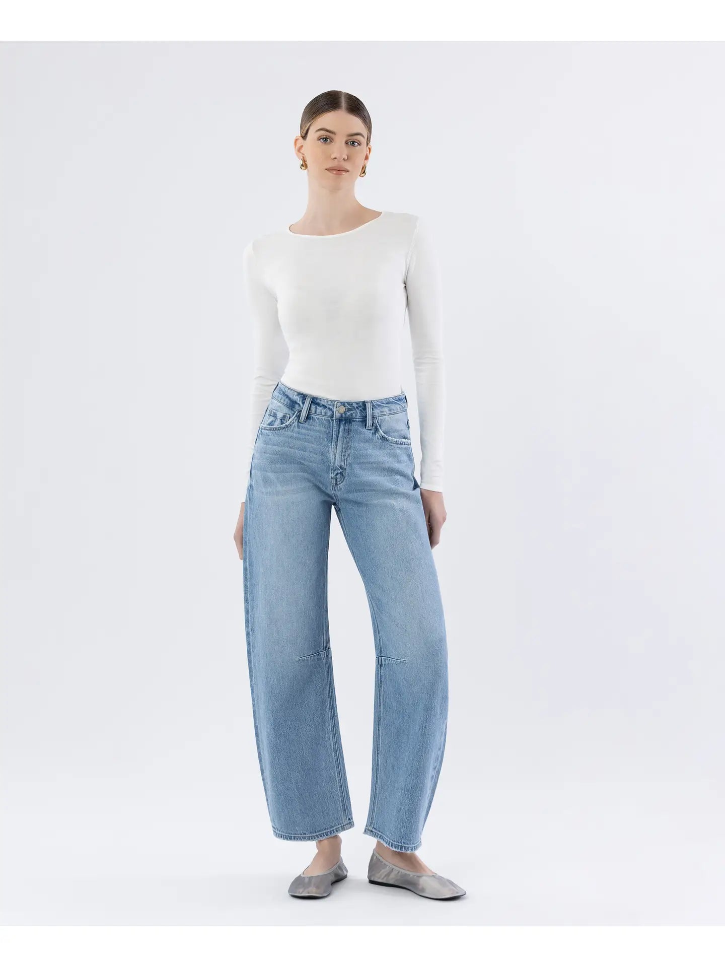 The Gigi Barrel Jean brings fun and flair to your denim collection with its true denim fabric and standout design. Featuring a high-rise waist, these jeans perfectly balance a tapered yet baggy fit, creating a playful silhouette. The perfectly faded medium wash adds a cool, versatile edge that pairs effortlessly with any top. Step out in style and let your jeans do the talking!