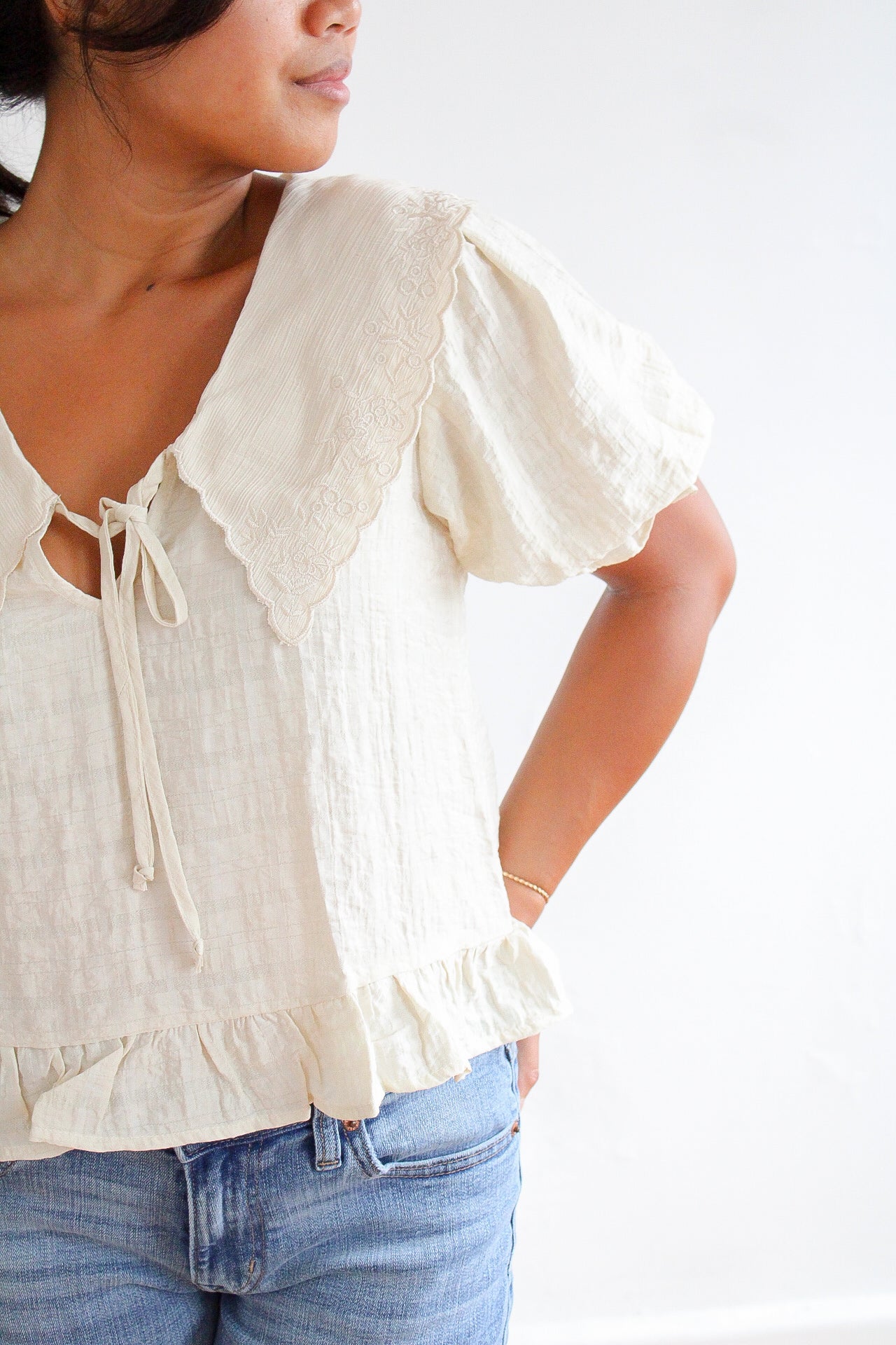 Introducing the Josephine Top, perfect for anyone looking for a touch of elegance and feminine charm in their wardrobe. With its vintage vibe and dainty details, this top will transport you to a quaint cottage in the countryside. (Just without all the hard work that goes into maintaining one.)